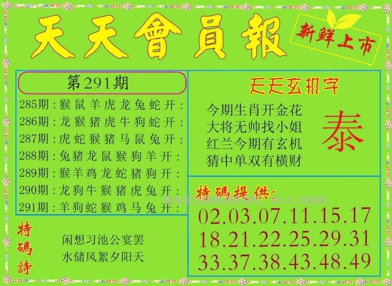291期:╠平特一尾╣【3333】开:猪43准 |
